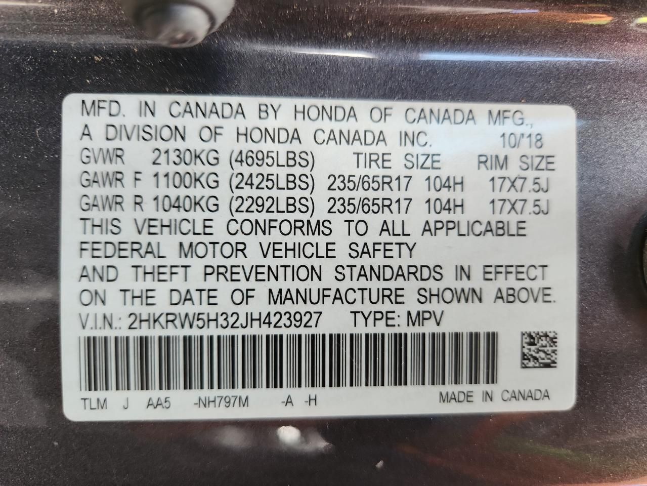 2HKRW5H32JH423927