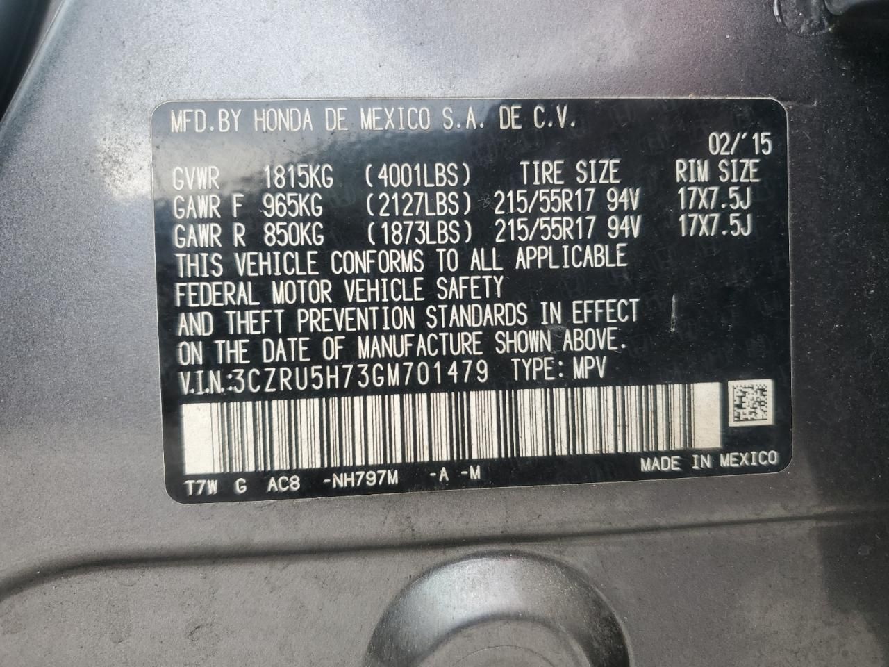2016 HOND HR-V EXL