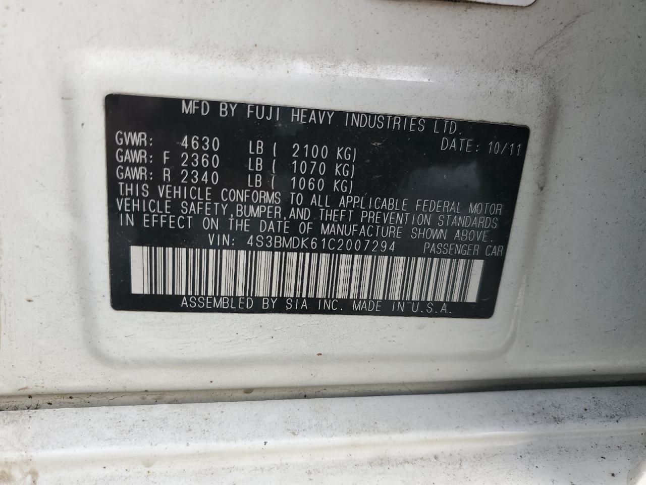 2012 SUBARU LEGACY 3.6