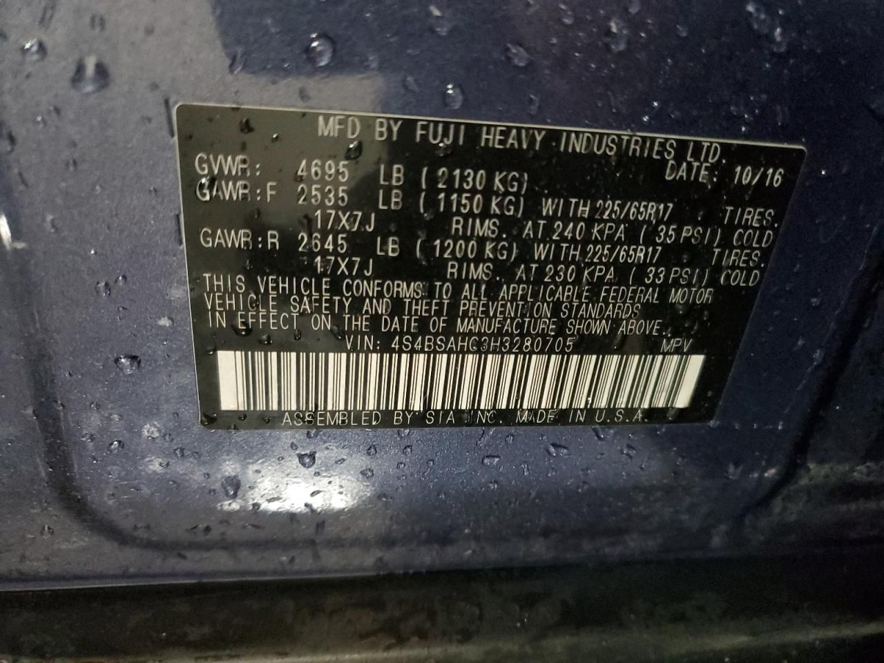 2017 SUBARU OUTBACK 2.