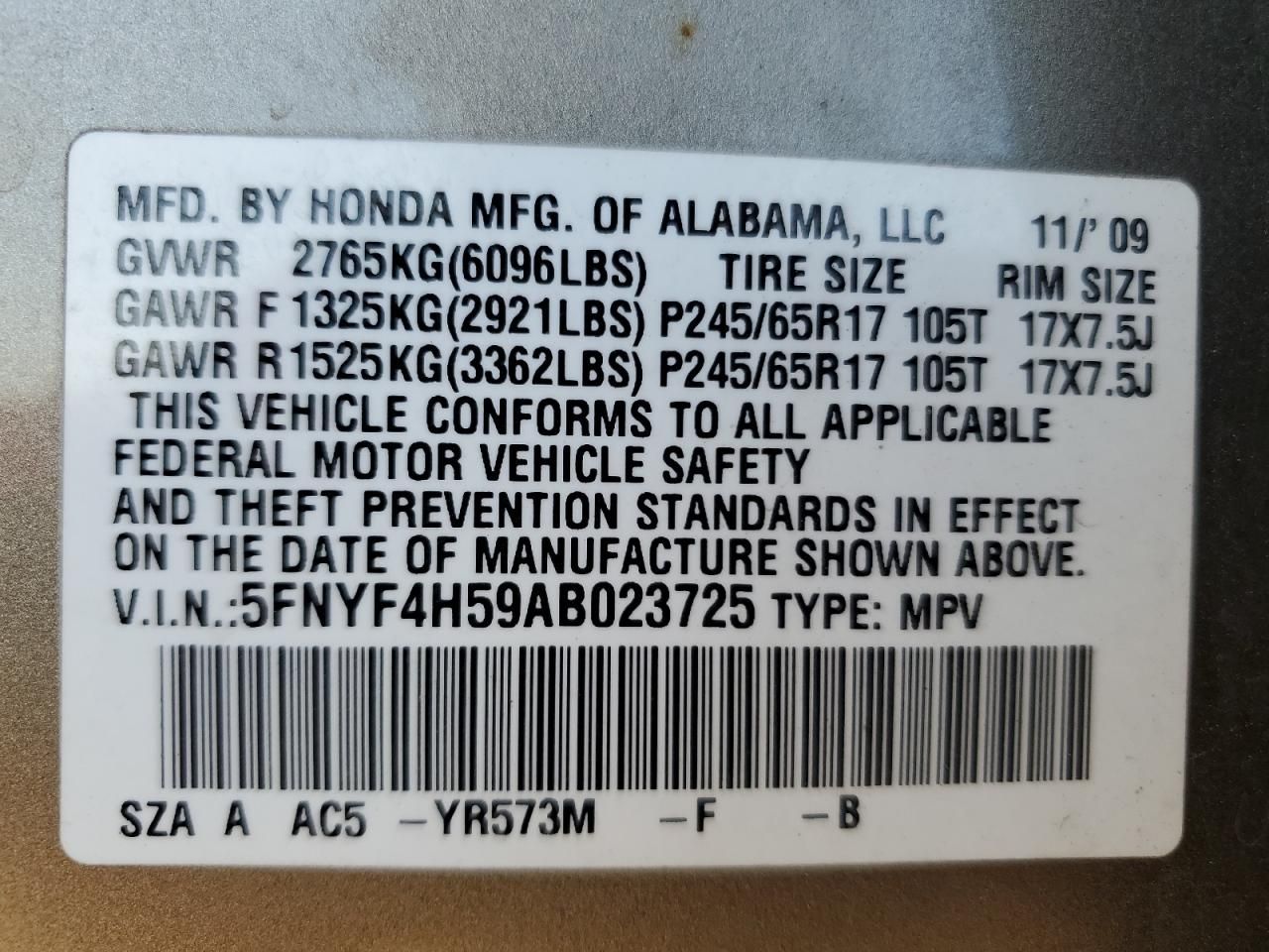 5FNYF4H59AB023725