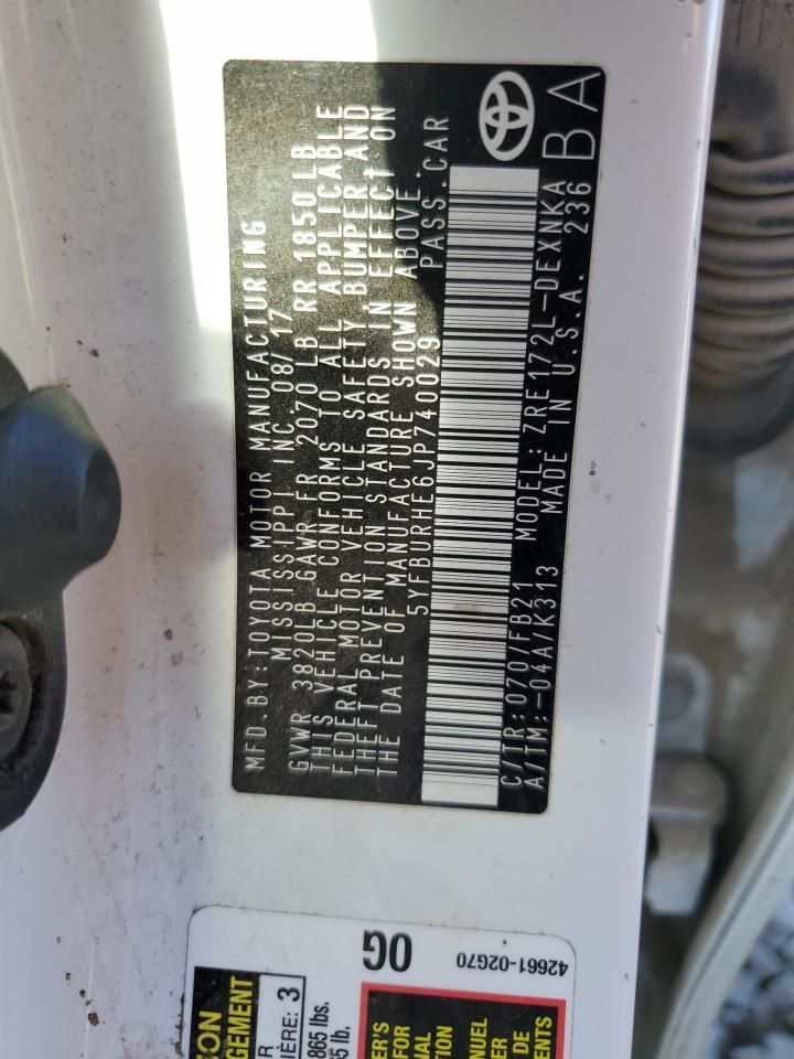 2018 TOYOTA COROLLA L