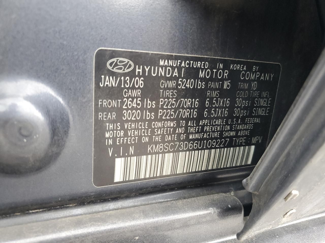 KM8SC73D66U109227